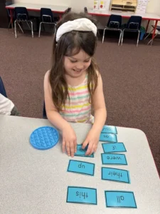 Accountability is expected for managing self-directed table/center activities at the beginning of each day, such as letter or writing activities, using organizational skills in the care of their own work materials, and for fully participating in all learning areas during class time. Kindergarten attributes and in depth conceptual ideas are reinforced throughout the daily curriculum and routine, including extended math, science, pre-reading with application of phonemic awareness and writing. As in all classes, gross and fine motor skills are practiced through both classroom activities and specialized classes. Basic Spanish words are also introduced. Children exiting this program will be well prepared to be successful students in Kindergarten and beyond.